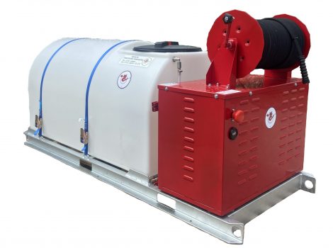 The Tornado Electron Skid Mounted unit is a battery powered skid mounted pressure washer with a 900 litre water tank. This unit is an alternative to the towable bowser and can be mounted into the back of a van or fixed in position on a site.